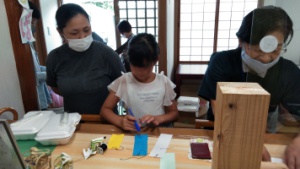 七夕の短冊に願い事を書く子ども食堂(地域食堂)の参加者(子どもの顔はぼかします)