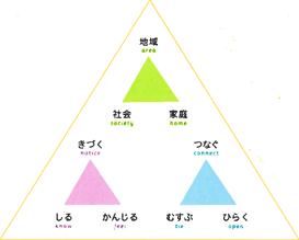 「”男女共同参画”の活動内容が分からないとよく言われます。家庭環境や世代によってこの言葉の捉え方が違うので仕方のないことかも知れません。グループ名の由来でもありますが『鶴岡男女共同参画グループさんかく』は、”地域・社会・家庭”の3つの頂点を、”きづく・しる・かんじる”ことで、”つなぐ・むすぶ・ひらく”に発展させられればと活動しています。男女ともに助け合い、お互いを尊重し、それぞれが家庭・地域・職場などで持てる力を発揮し、地域社会全体がより元気になることを目指しています」