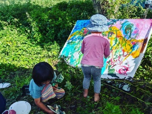 創作活動の合間を縫って、夫が主になって取り組んでいる「森のようちえん・カムイキッズ」に顔を出すこともある。アートに興味がある子がいれば、一緒に遊びながら創作の楽しさを伝えている。