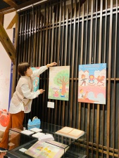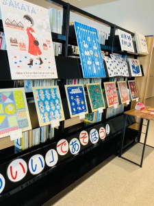 ミライニ・酒田市立中央図書館でのイラストパネル展での様子(2022年9月)