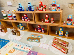 酒田のことを全国の人に知ってもらいたいと思い、お土産にもなる酒田オリジナルのグッズも制作している。ポストカードなど紙の小物だけでなく、酒田大獅子や「はんこたんな」のマトリョーシカ、クリアファイルや手ぬぐいなど、大好きなイラストと雑貨が一つになったグッズ作りを手がけているところだ。
