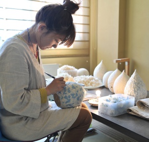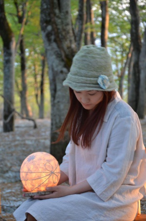 現在は地元の月山和紙を素材にあかりを制作し、個展やワークショップを開催している。