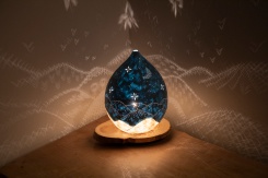 2005年、家業を手伝うため東京からUターンした。シーズン中は旅館の仕事をし、オフシーズンの冬にあかりを作るようになった。全ての工程を手作りで、月山の豊かな自然をモチーフに風景を感じてもらえるようなあかりにしたいと、和紙の重ね方を変えてみたり、押し花にした葉を挟み込んだり、独学で技法を模索していった。あかりに使う月山和紙も、三浦さんにお願いしていろいろな色に染めてもらえるようになり、作品作りの幅も広がってますますあかり作りに熱中した。ワークショップの機会も多くなり、参加した人が誰でも気軽に体験できるように、作りやすさや教え方を工夫した。
