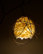 木の枝と組み合わせたあかり「KARAMATSU」