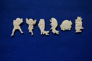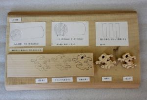 モチーフは葛飾北斎や歌川国芳の浮世絵の中から選び、商品化するまで何度も試作を重ねて6種類のデザインを完成させた。これでまた木彫りのブローチの世界が広がった。