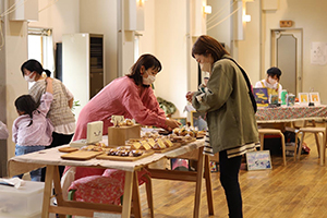 「はけごの会」も、制作しながら会話も楽しむ場となり、そこに若い子育て中の人も加わると、年代は違っても共感し合い交流が生まれる。皆誰かと話をしたいという思いがある。産後、家族のサポートはあるけれど、同年代の話し相手がいなかったことで寂しく辛い時期もあった。この時に「思いつめなくても大丈夫だよ」と一言、身近にいる人や友達に言われたら少し救われたな、という思いがあり、この「une」は子育てする人たちが集まる場所になれればいいと考えている。