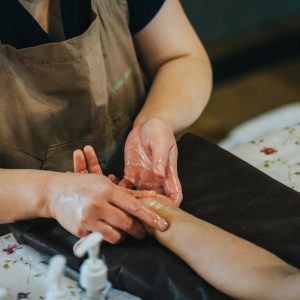 手に優しく触れるハンドトリートメント