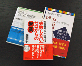 尾形さんの著書。「失敗しないゼロからの起業」は韓国語にも翻訳されている