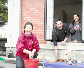 “山形掃除に学ぶ会”で、仲間と一緒に活動中。