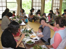 また年3回『あんよカフェ』を実施。あんよカフェでは、漬物やぜんまい炒りなどの郷土料理を味わう他、あやとりや折り紙、めんこなどの伝承遊びを楽しむ。「あんよカフェには、スタッフだけでなく近所の高齢者も参加します。採れたての山菜や、収穫したばかりの新鮮な野菜を使って、さまざまな世代が一緒になって郷土料理を作ったり、昔遊びを楽しみます。料理は得意分野なので、スタッフもこのときは特に熱が入ります。実は参加者以上にスタッフが楽しんでいるのかもしれません。」