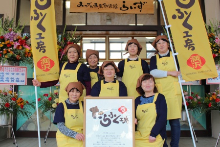 平成28年9月。漬物や惣菜、飲食店の許可を取得し、「みつざわ創造館らいず」オープンと同時にプレオープンした「たらふく工房満沢」には、河北新報に情報が掲載されたこともあり、各地から客が訪れたという。その後、施設の改修を経て翌年の平成29年3月にグランドオープンを迎えた。