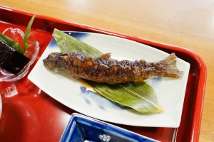 定番メニューのイワナの唐揚げ。頭から食べられる。