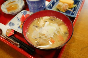 冬御膳の納豆汁。作業は納豆をすりつぶすところから。
