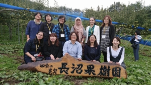 2018年10月、埼玉県の国立女性教育会館が主催する平成30年度アジア地域における男女共同参画推進官・リーダーセミナーでアジア5カ国(カンボジア、中国、インドネシア、韓国、ベトナム)から、男女共同参画に携わる行政担当者やNGOのリーダー9名が来日。この工程の4日目に来県、午前はJAてんどうにて、JAフレッシュミズ部会の活動について結城さんが講義した。午後は長沼果樹園で、農業女子プロジェクトのメンバーが加わり、女性農業者の現在の課題等意見交換を行った。