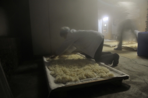 会社のトップとはいえ、事務全般やギフトのラッピングなどなんでもこなす。杜氏が体調不良になったときには、代わりに蔵に入り、20kg近い米を担ぐこともある。